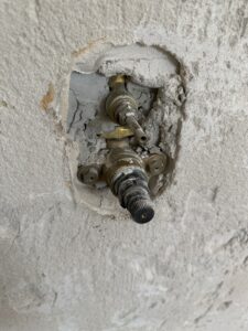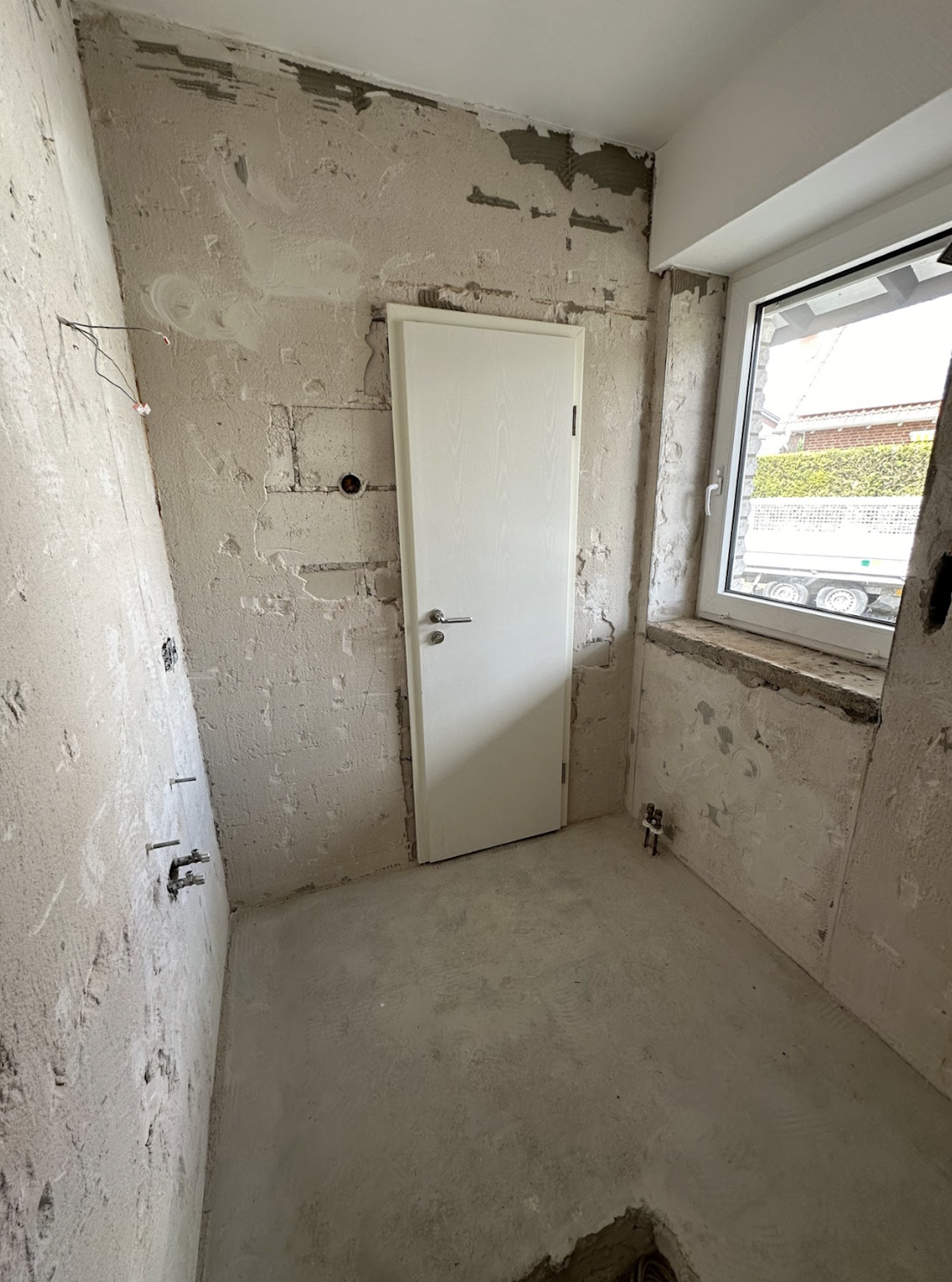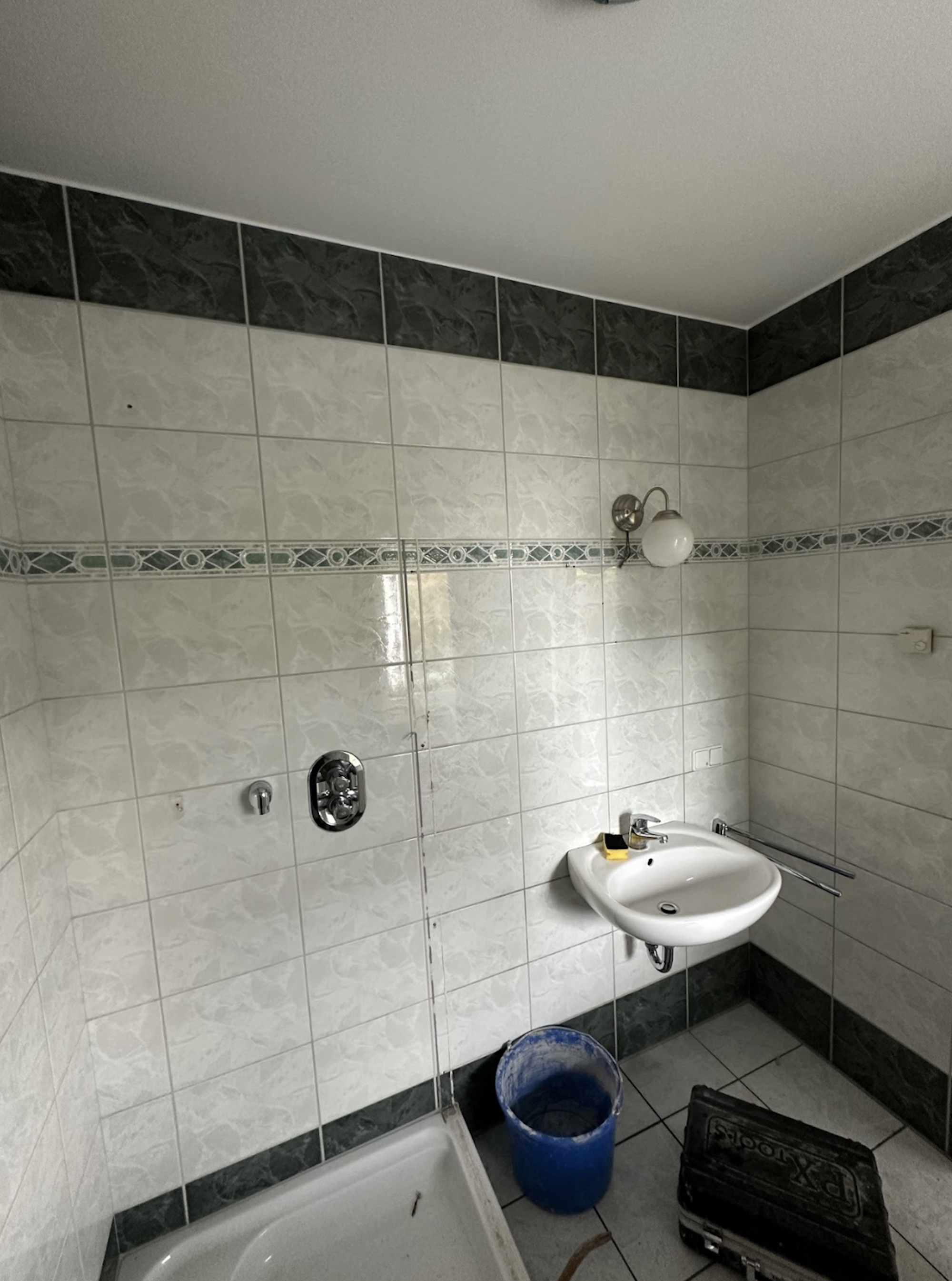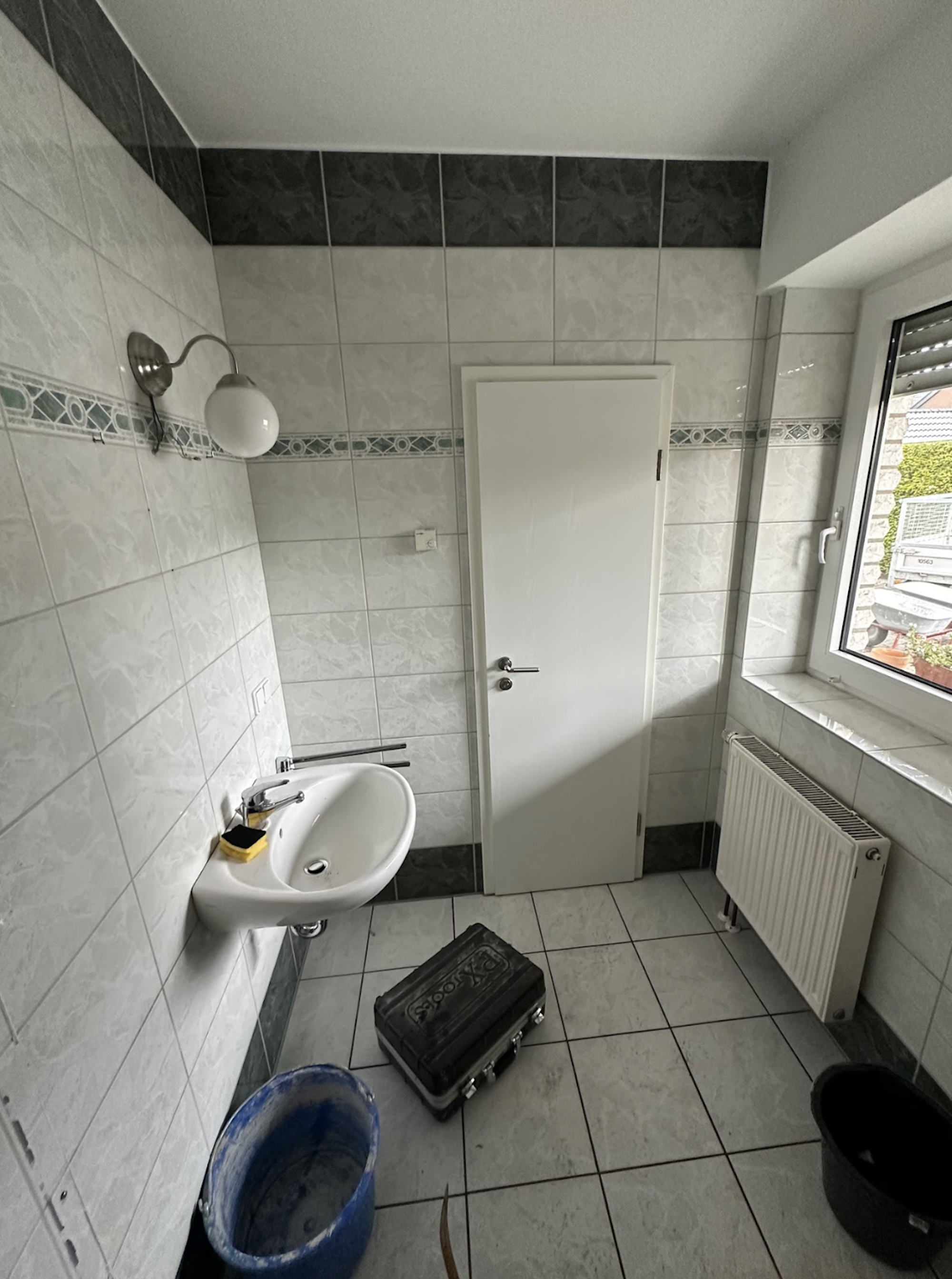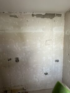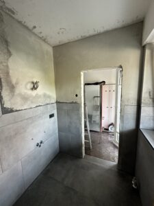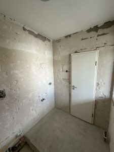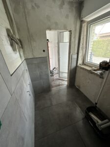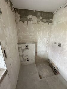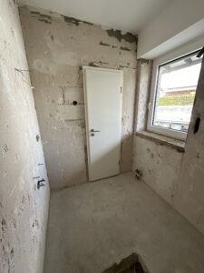Bei diesem Projekt haben wir ein Badezimmer vollständig kernsaniert. Dafür wurden die Wasserleitungen sowie die gesamte Elektrik erneuert und gleichzeitig die Eingangstür ersetzt.